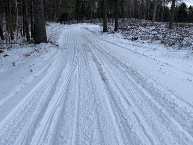 We both headed out for rides this morning hitting some St. Germain, Eagle River and Sayner trails. Trails are in very early season riding condition. Areas that didn’t completely melt during the Christmas thaw have an ice base while any area that did melt has no base. Where there is a base you’ll find fair to good. Where there’s not a base expect poor to fair with lots of scraping. There are some stretches that were all white, smooth and in good shape with a decent base. Others are lean on snow and you will scrape lots and don’t have much, if any, base. There are lots of ruts left from the trucks driving on them in the warm weather that will need more snow to fill in. There are also some bumps that need more snow to fill in and smooth out. You will find rocks that got stirred up from the drags (if you see a big one, please pull to the side, get off your sled and move the rock off the trail). Lake accesses are rough and don’t have much if any snow on them. Road trails don’t have much of a base and your carbides will scrape a lot.