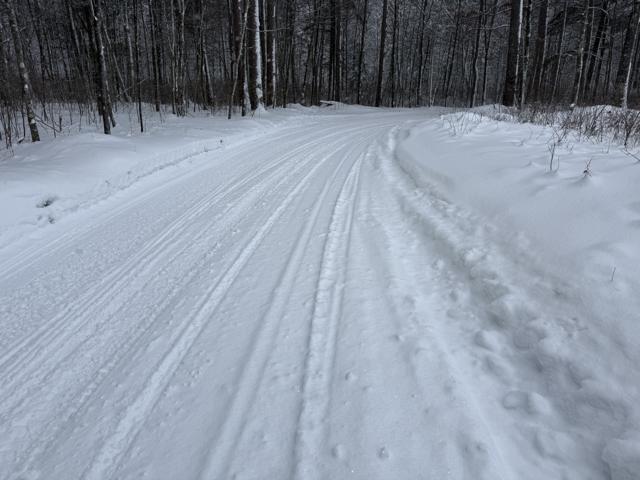 I headed out for a ride hitting some St. Germain, Eagle River and Sayner trails. All the trails I rode had been groomed. Everything was good to excellent. There are still some bumps that were there before the snow or where there were ruts in the trail that haven’t been completely filled in yet. With the heavy wet snow there’s lots of branches down so be a good helper and throw some off the trail.